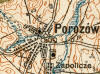 This map appears to locate the synagogue just under the space between the letters "r" and "o" in "Porozow." |